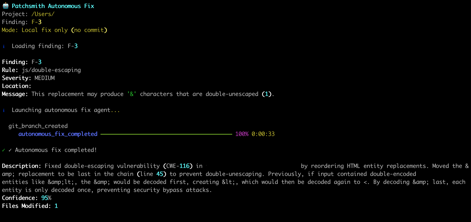 Patchsmith wraps CodeQL with an agent that writes better queries, triages findings, and drafts fixes — from CLI.