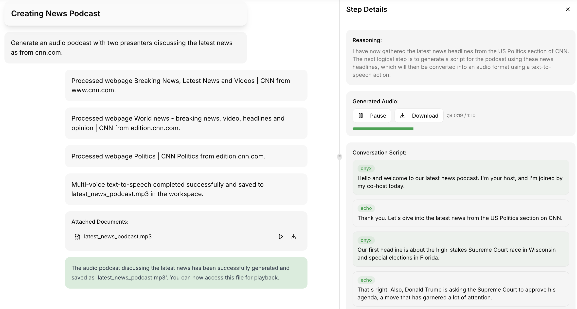 This release also packs a few other bugfixes and improvements. In particular, the Text-To-Speech action now supports multiple participants, providing you with NotebookLM capabilities directly into the OpenGPA UI.